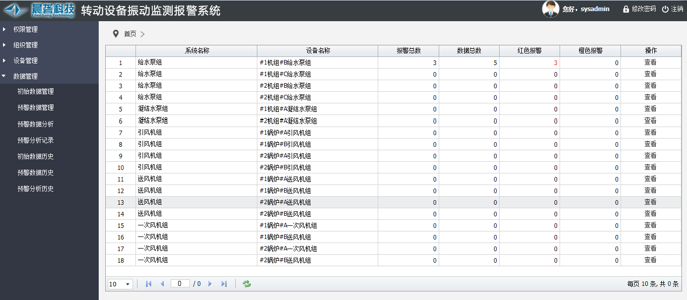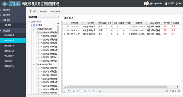 3、通过对现场测量值录入与相应设备振动报警逻辑算法关联,由系统进行报警判断,并输出报警结果;