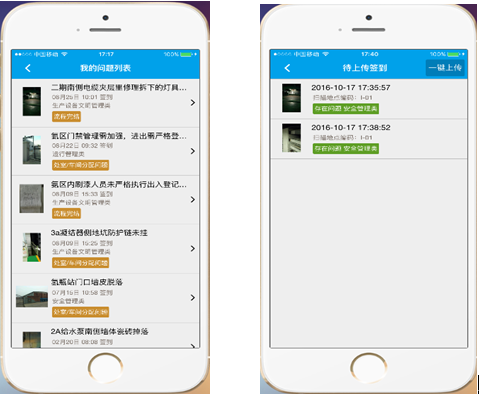 同时,如果发现问题,可填写问题描述,并上传问题照片,问题照片可以当场拍照,也可以将手机相册中的照片上传,提交后将记录一条问题提交记录。