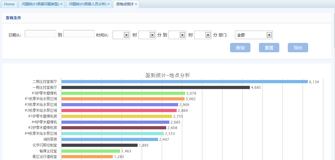 对领导某个时间段内到各班组的到岗到位次数情况进行统计。