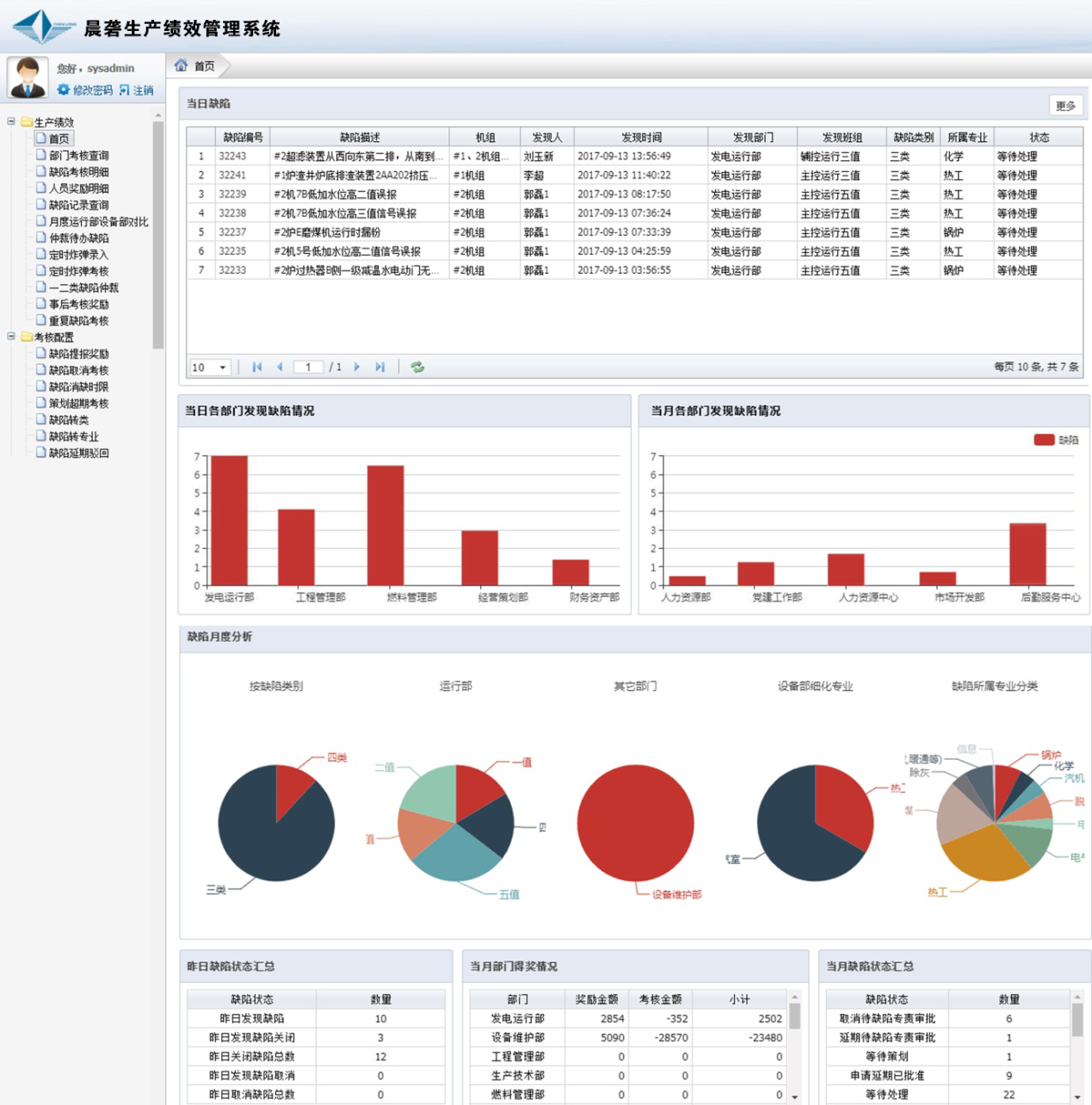 1. 通过对缺陷处理状态、三票处理状态等关键信息的统计和记录,结合各厂相应管理制度,将制度拆分成指标,将指标量化,进行系统实现;