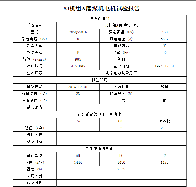 能够实现同一规程下不同高压绝缘设备的数据对比。