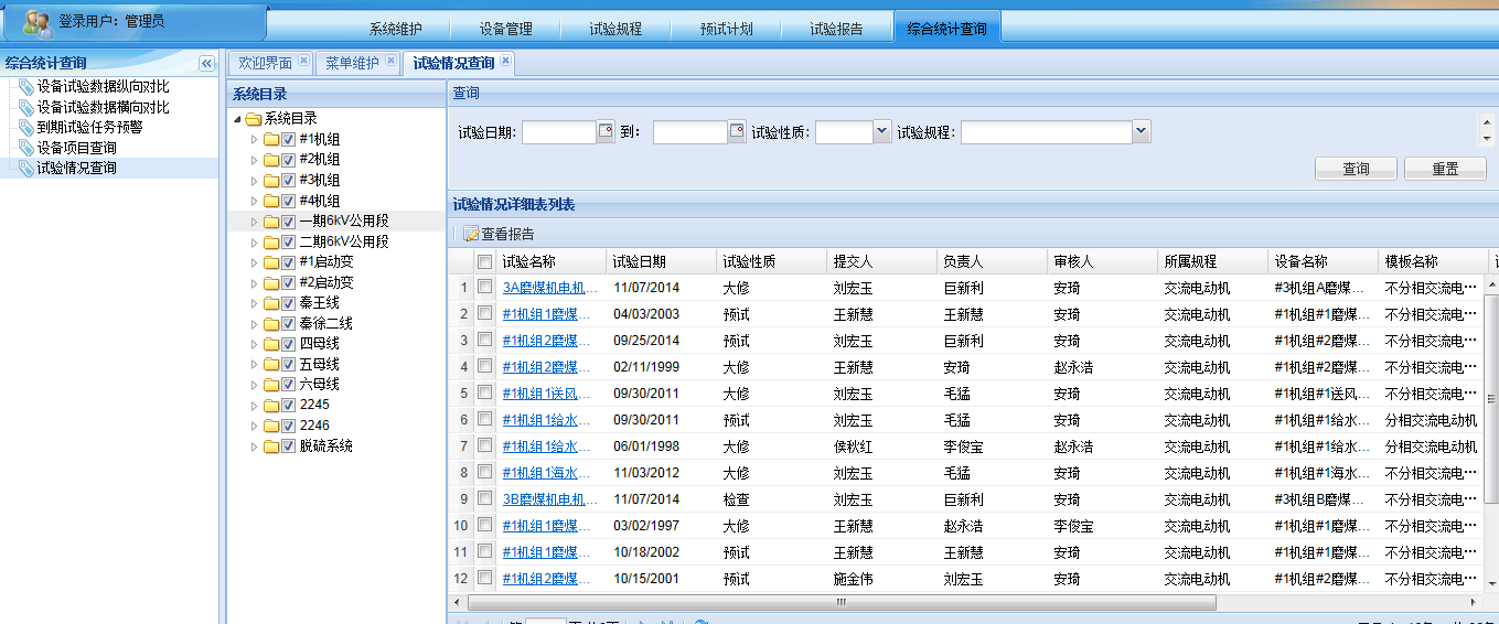 可以对高压电气设备绝缘试验报告进行管理,将手工记录的纸质试验报告复制到系统的试验报告模板中,实现电子化管理试验报告。可自动统计和查询到每个设备每次试验报告,将手工纸质传递预试验审批过程转变为系统流程作业。