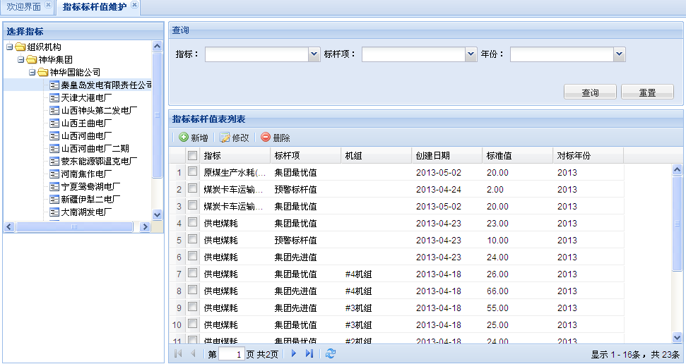 系统实现对参与对标的指标标杆值管理,集团/电厂可以将集团目标、预警标杆值等种类的目标值进行设定。在指标对比分析的过程中,可以与各类指标目标值进行对比,找到差距。