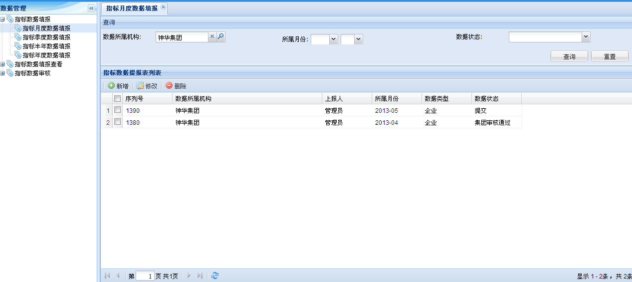 公司各级组织的填报业务管理,用户根据各指标的计算周期不同,根据不同权限,分别录入各指标相应月份的数据。