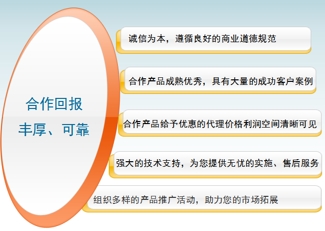 我方针对合作伙伴,可提供全面的产品支持、技术支持、培训支持、市场支持、销售支持!真诚期待与您的合作!共创美好未来!